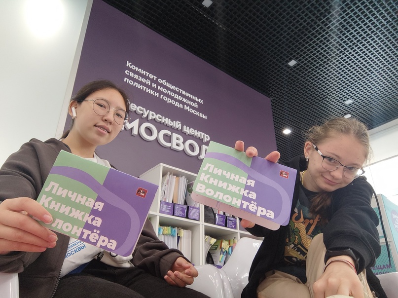 Сегодня Арина и Лиза получили свои Личные Книжки Волонтера (ЛКВ) в центральном штабе Мосволонтер.
